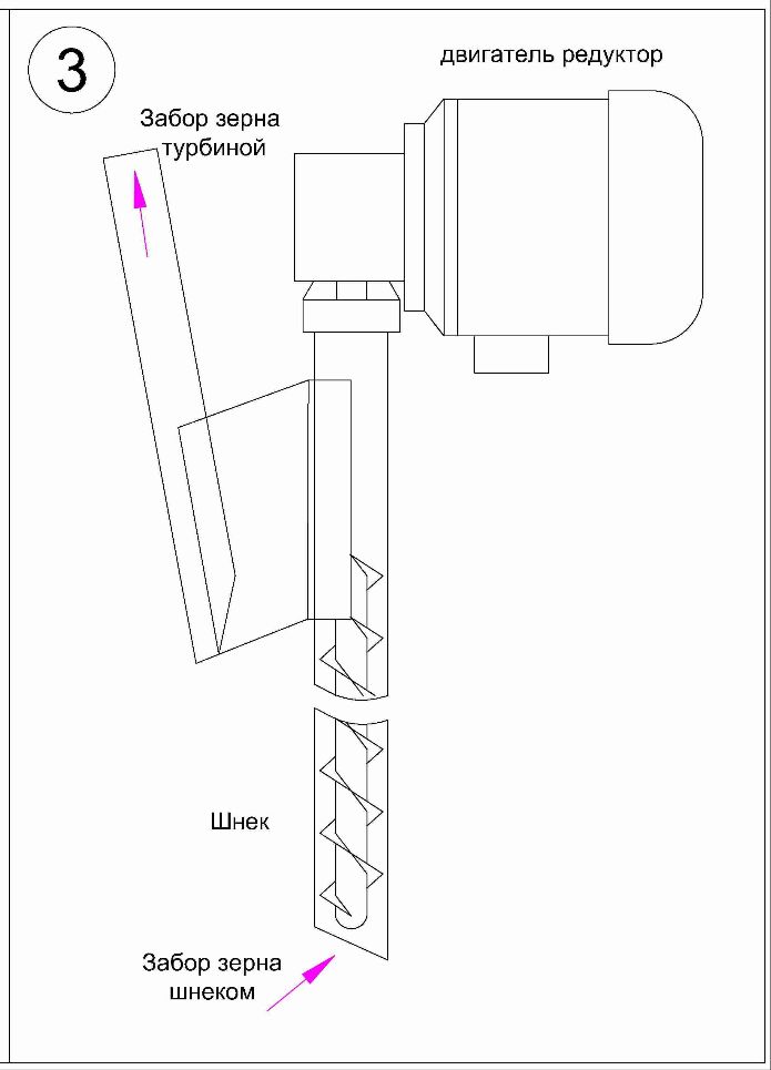 - представляет из себя нержавеющую трубу с шнеком внутри. Шнек приводится в действие отдельным моторредуктором. Вверху шнека - небольшая камера для отбираемого зерна, откуда проба засасывается турбиной.